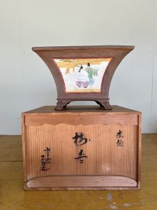 NO.17 市之倉石州 象嵌五彩絵付け長方 間口29cm×奥行24cm×高さ18.3cm